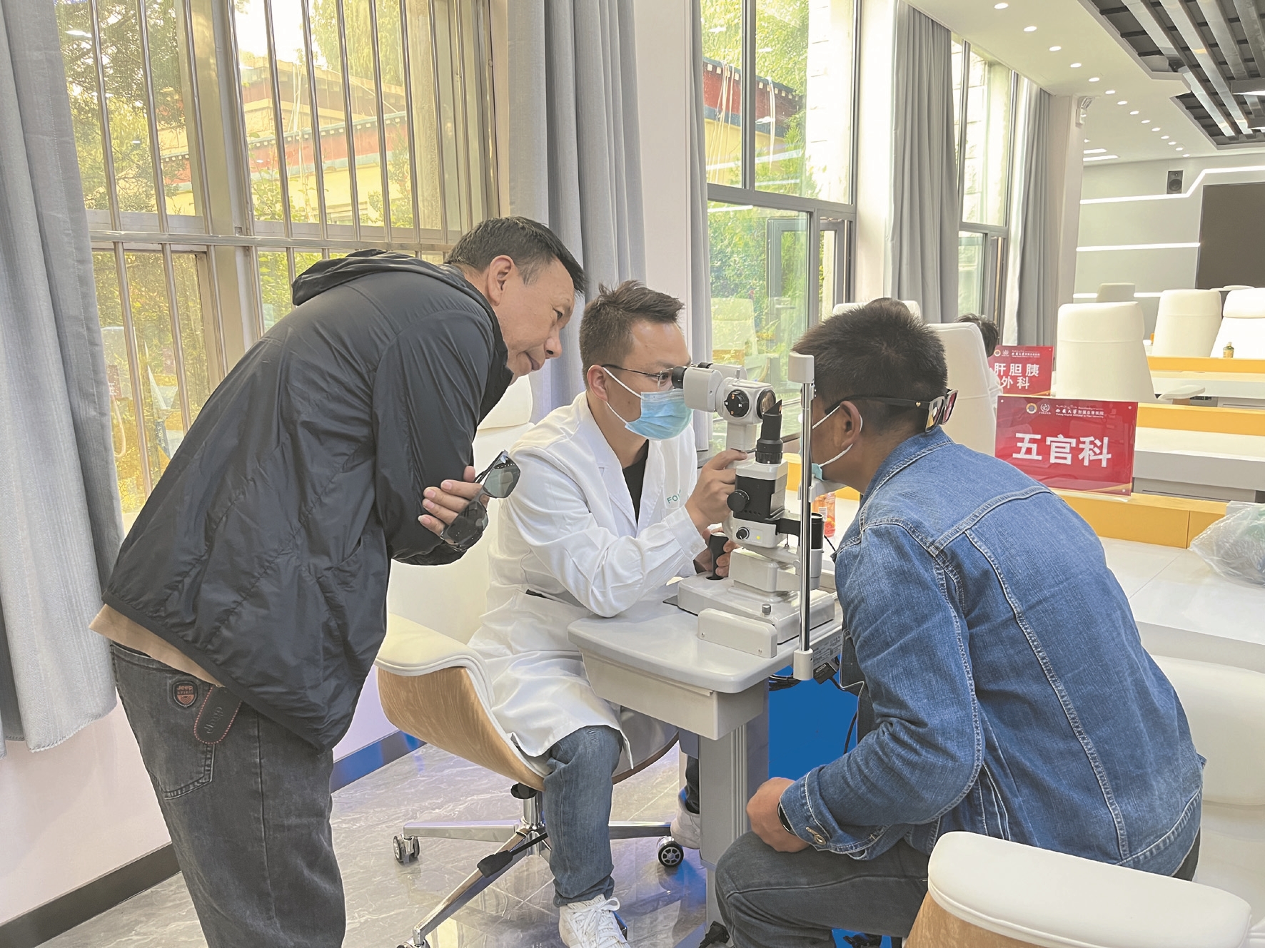 圖為西藏大學附屬阜康醫(yī)院的醫(yī)生為職工檢查眼睛。 拉薩融媒記者 大索朗曲珍攝