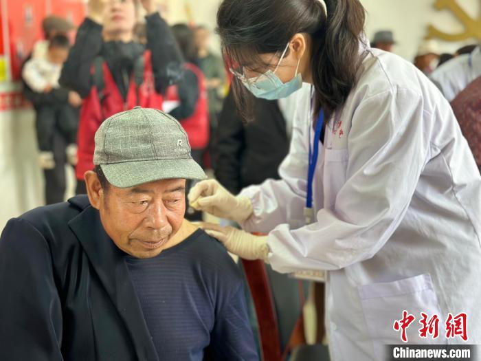 在紅崖溝村民委員會門口,許多居民早已冒雨在此排隊等候。村民曲多帶著5歲的女兒早早到達現(xiàn)場,“最近總感覺膝蓋不舒服,聽說有醫(yī)學院義診,就連忙過來看看。”