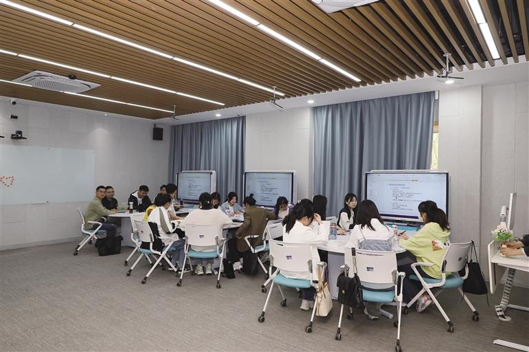 智慧課堂上,老師可以一鍵發(fā)起,將隨堂小測試發(fā)布到學(xué)生手機(jī)上,學(xué)生按要求在限定時間內(nèi)作答,結(jié)果會實(shí)時顯示在教師終端,老師可以第一時間知曉學(xué)生對新知識的掌握程度,隨時調(diào)整教學(xué)節(jié)奏。信息工程學(xué)院教師趙雪嬌說:“傳統(tǒng)的課堂大多是幾位活躍的同學(xué)與老師互動,現(xiàn)在通過線上搶答、頭腦風(fēng)暴、答疑等功能,老師可以帶動全班學(xué)生參與到課堂中,得到同學(xué)們對于課程掌握程度的實(shí)時反饋和評價,從原來老師一個人的單聲道知識傳授到現(xiàn)在全員參與的立體聲,課堂氛圍活躍了不少?!睂W(xué)生通過研討式教學(xué)可以不斷提升溝通表達(dá)能力、團(tuán)隊(duì)協(xié)作能力、邏輯思維能力等。