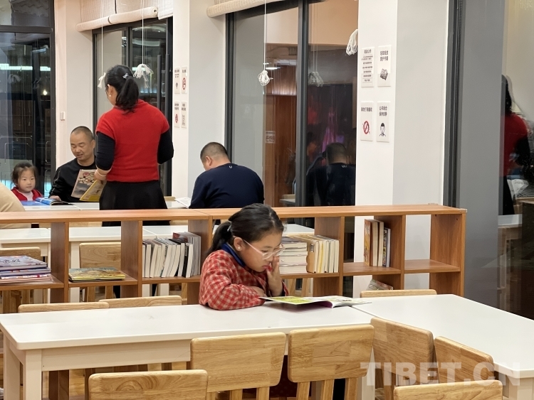 走進蓮花書屋,一樓的書架和閱讀區(qū)幾乎坐滿了專心閱讀的大人小孩。“我喜歡來公園散步,這里環(huán)境很美。前天過來散步時,看到我期待已久的書屋終于可以進去看書了。家里的書都被我看完了,所以我這兩天一寫完作業(yè)就要來這里看新的書。”五年級的德央措姆在少兒閱讀區(qū)翻看書籍,她為能夠擁有這樣的讀書環(huán)境而感到很高興。