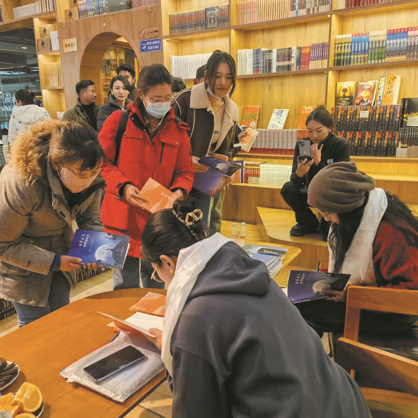 圖為在讀書分享交流會(huì)現(xiàn)場,作家納穆卓瑪與達(dá)娃央金在為讀者簽名。 拉薩融媒記者 滿文妍攝