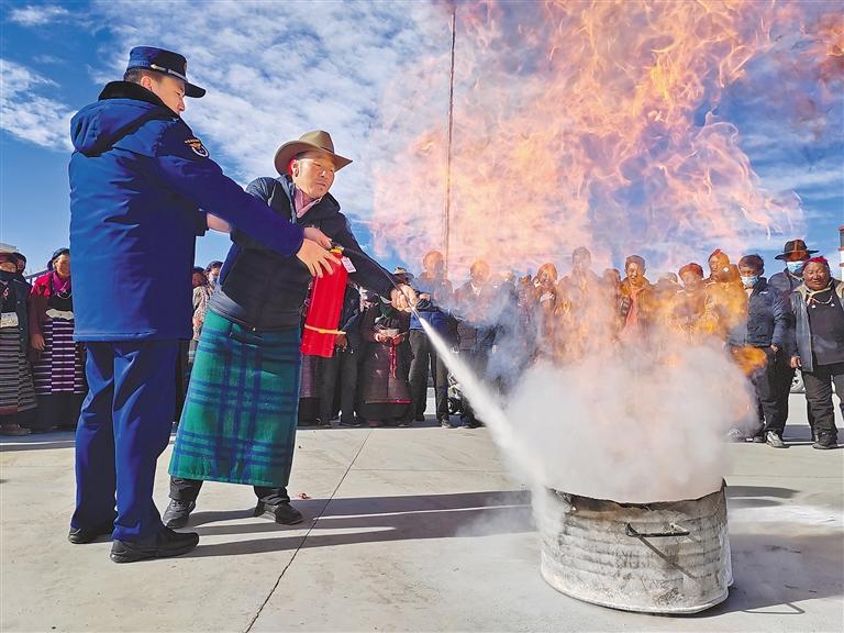 活動中,隊伍各級積極制作藏漢雙語宣傳彩頁、海報、宣傳冊、宣傳袋等“消防禮包”80余萬份,聯(lián)動消防志愿者通過“走街串巷”的形式深入轄區(qū)“九小場所”、沿街門店、居民樓院等廣泛發(fā)放,并采取“面對面”宣傳講解、“一對一”互動交流等方式,向廣大群眾傳授防火基本常識,教授如何正確使用滅火器、如何撲救初起火災、如何逃生自救等。在開展宣傳的同時,“火焰藍”和“志愿紅”還進村入戶,幫助群眾查找火災隱患,講解隱患存在的嚴重危害性,切實提高群眾的消防安全意識和自防自救能力。