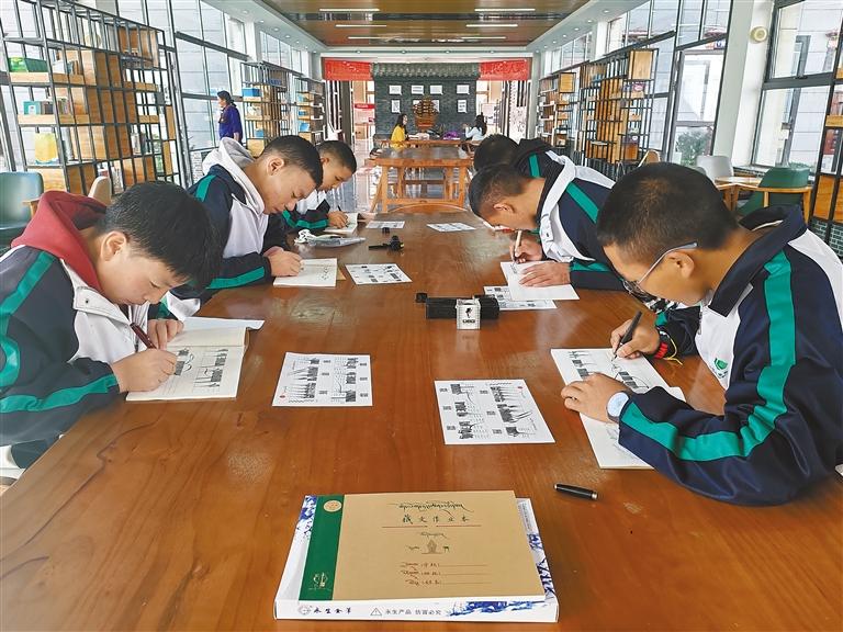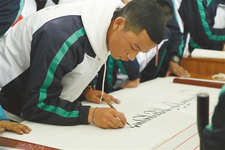 圖為拉薩北京實驗中學(xué)舉行藏文書法比賽。