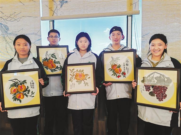 學(xué)員尼瑪次仁和格桑旦增通過寫意花鳥的創(chuàng)作,感受到了中國畫的魅力。他們的作品《石榴紅了,籽籽同心》在北實宏志班赴京游學(xué)中作為禮物,贈送給北京友好學(xué)校。