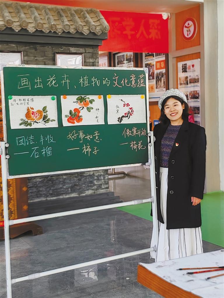圖為馬瀟雅老師在國畫展示課上。