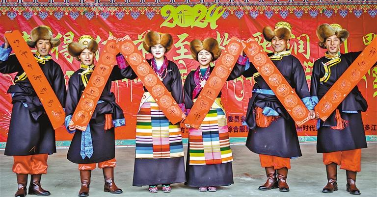 日前,西藏山南市曲松縣邱多江鄉(xiāng)組織300多名干部群眾在瑪如村舉辦了以“喜得佳節(jié)至 牧歌潤川野”為主題的“村晚”文藝匯演活動。當?shù)啬撩瘛⒎掂l(xiāng)大學生用17個精彩的舞蹈、歌曲、朗誦等節(jié)目,謳歌新時代新生活,展現(xiàn)基層群眾積極樂觀、昂揚向上的精神風貌。