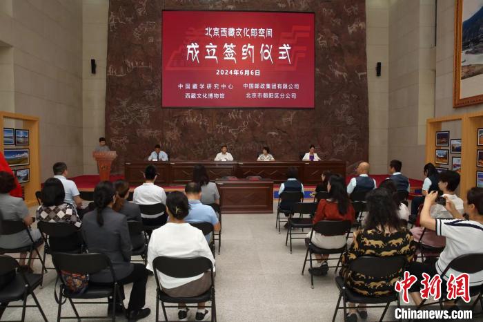 6月6日,中國藏學(xué)研究中心西藏文化博物館與中國郵政集團有限公司北京市朝陽區(qū)分公司聯(lián)合建立“北京西藏文化郵空間”合作簽約儀式6日在位于北京的西藏文化博物館舉行?!≈袊貙W(xué)研究中心西藏文化博物館供圖