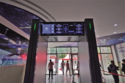 北航實(shí)驗(yàn)學(xué)??键c(diǎn),升級(jí)后的智能安檢門(mén)。新京報(bào)記者 李木易 攝
