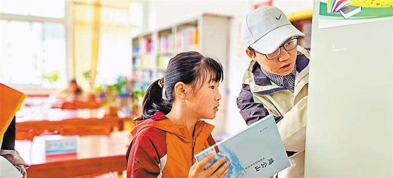 圖為林芝市圖書館工作人員為“小小圖書管理員”講解圖書編碼和書籍種類等問題。