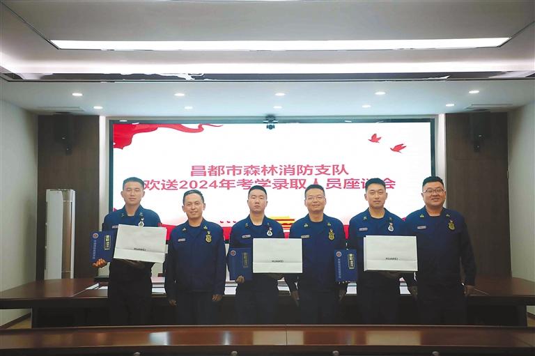 在2024年中國(guó)消防救援學(xué)院面向優(yōu)秀消防員單獨(dú)招生考試中,昌都市森林消防支隊(duì)吳文昊、劉濤和周軍3名消防員以優(yōu)異的成績(jī)考入中國(guó)消防救援學(xué)院。近日,昌都市森林消防支隊(duì)召開中國(guó)消防救援學(xué)院錄取消防員歡送座談會(huì)。