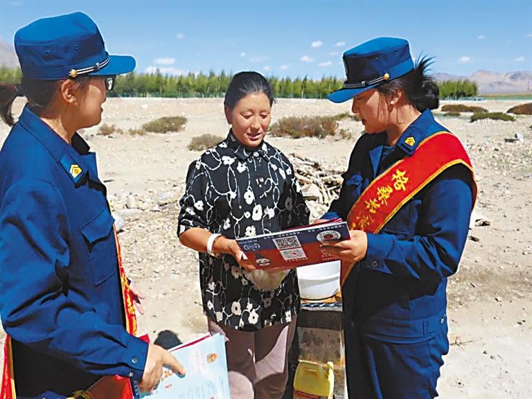 圖為阿里地區(qū)“雪域藍(lán)盾·消防宣傳教育講師團(tuán)”成員深入轄區(qū)為農(nóng)牧民群眾講解消防安全知識(shí)。