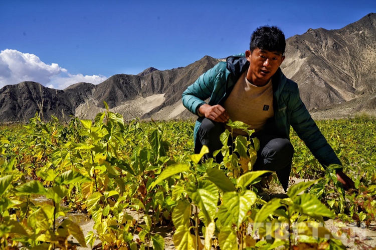 中國西藏網(wǎng)訊 他正蹲在苗圃基地里,用手輕輕地?fù)芘酌?,觀察幼苗的生長情況。微弱的陽光透過苗圃基地照射在他的臉上,使他的面龐顯得愈加黝黑,而那一頭卷發(fā)也愈顯得烏黑茂密。高高的個(gè)子在襯衫的映托下,顯得他特別精干。他就是西藏自治區(qū)山南市貢嘎縣吉雄鎮(zhèn)劉瓊村阿新朗苗圃有限公司董事長,劉瓊村致富道路的“筑夢人”扎西班旦。