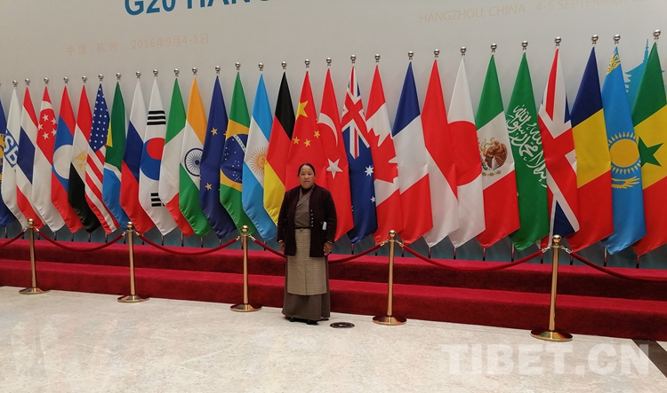 圖為2019年12月瓊結縣政協(xié)組織政協(xié)委員到杭州視察工作時,桑吉在G20峰會杭州主會場留影。