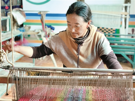 圖為村民在南木鄉(xiāng)多彩阿佳編織農(nóng)牧民專業(yè)合作社織布。拉薩融媒記者 孫靖宇攝