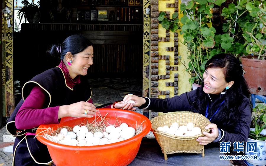 西藏林芝市魯朗鎮(zhèn)村民整理收集來(lái)的藏雞蛋(2016年4月6日攝)。新華社記者 張汝鋒 攝