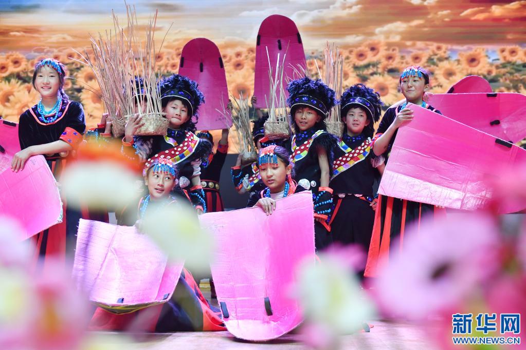 3月30日,米林縣中學(xué)學(xué)生在“U+校餐計劃”捐贈儀式上表演節(jié)目。新華社記者 孫瑞博 攝