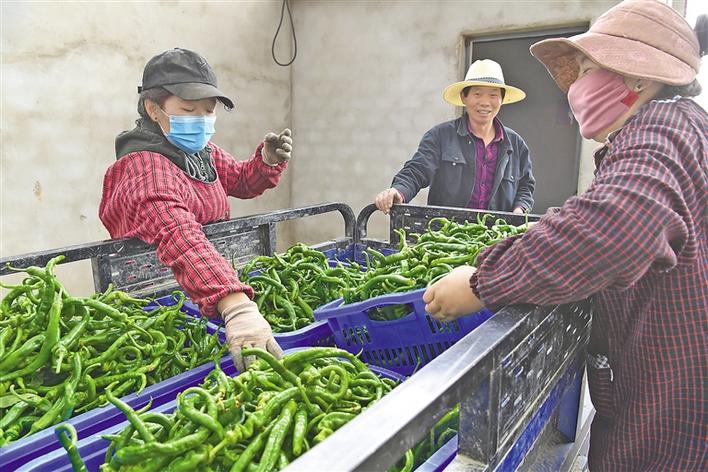 圖為在基地就業(yè)的瓊結縣下水鄉(xiāng)村民將采摘的青椒運往市場。記者 洛桑 次旺 攝