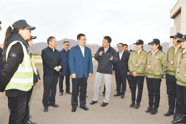 調(diào)研中,王君正強(qiáng)調(diào),黨的十八大以來,習(xí)近平總書記始終高度重視西藏工作、深切關(guān)懷西藏各族人民,親自為西藏工作把舵定向、謀篇布局,為做好西藏工作指明了前進(jìn)方向、提供了根本遵循。自治區(qū)黨委、政府立足西藏實(shí)際,統(tǒng)籌推進(jìn)新興產(chǎn)業(yè)培育、交通基礎(chǔ)設(shè)施和通用航空產(chǎn)業(yè)建設(shè),呈現(xiàn)出良好發(fā)展勢頭。