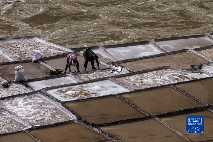 加達村村民在古鹽田里勞作(5月26日攝)。新華社記者 陳尚才 攝