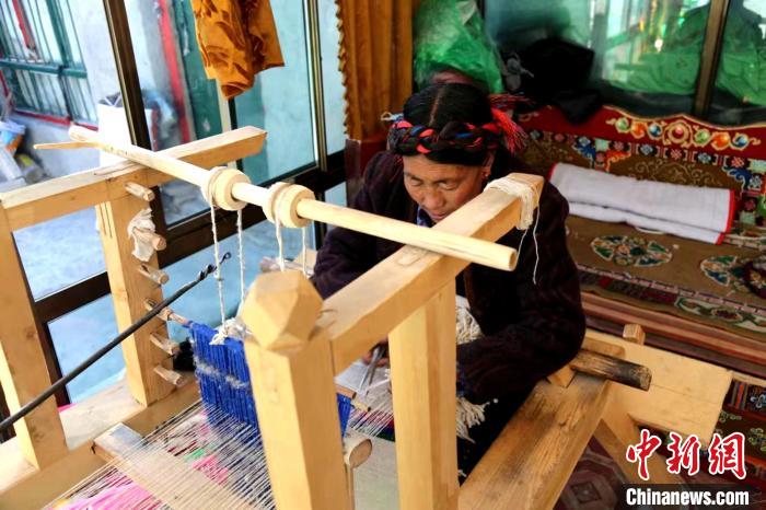 圖為普瑪江塘婦女在編織藏毯?!±丝ㄗ涌h網(wǎng)信辦供圖