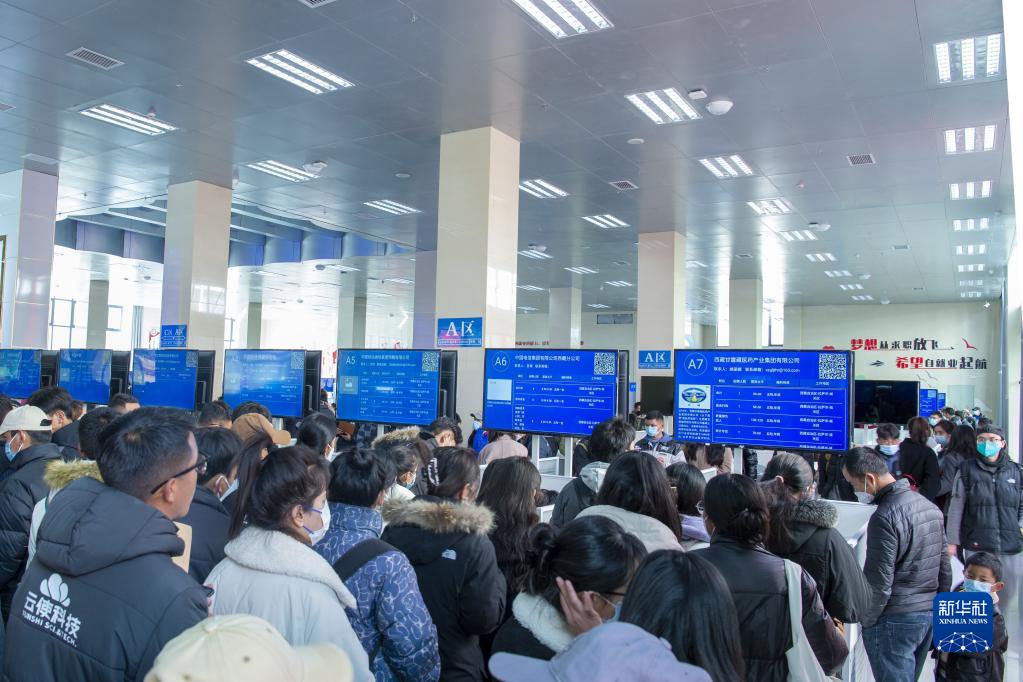 2月8日,西藏自治區(qū)2023年春風(fēng)行動(dòng)暨就業(yè)援助月招聘活動(dòng)現(xiàn)場(chǎng)。新華社發(fā) (旦增努布攝)