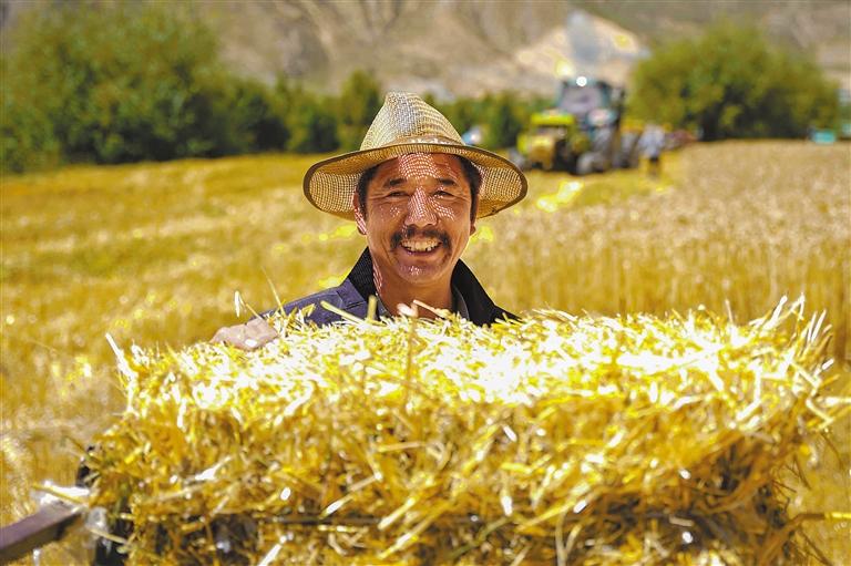 正值秋收時節(jié),山南市扎囊縣桑普村麥田里一片繁忙的景象,轟隆的機收聲猶如一串歡快的音符,奏響了豐收的樂章?!艾F(xiàn)在有了機械非常方便,你看,一眨眼的功夫這塊地就收完了?!贝迕癜渍渲钢矍暗柠溙镎f道。近年來,鄉(xiāng)親們靠著黨的支農(nóng)惠農(nóng)政策,不斷提升農(nóng)業(yè)機械化水平,收割效率極大提升。