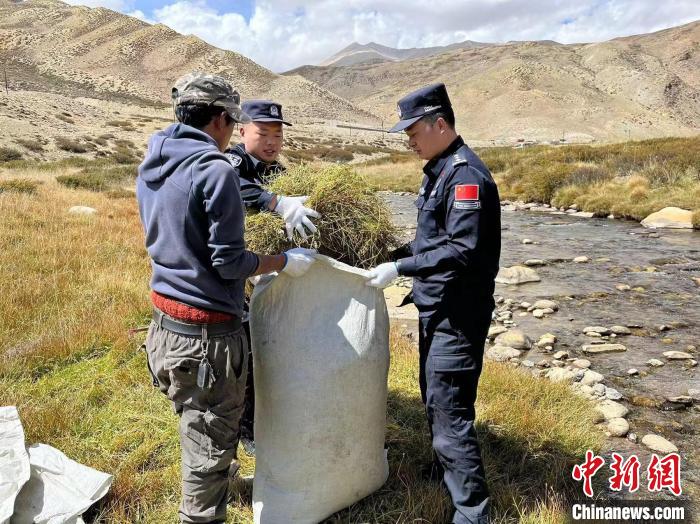 20日,在西藏阿里地區(qū)札達(dá)縣曲松鄉(xiāng)草場上,一眼望去處處是忙碌的身影,曲松邊境派出所移民管理警察和轄區(qū)民眾齊心協(xié)力,為儲存牲畜越冬度春飼草料辛勤勞作。