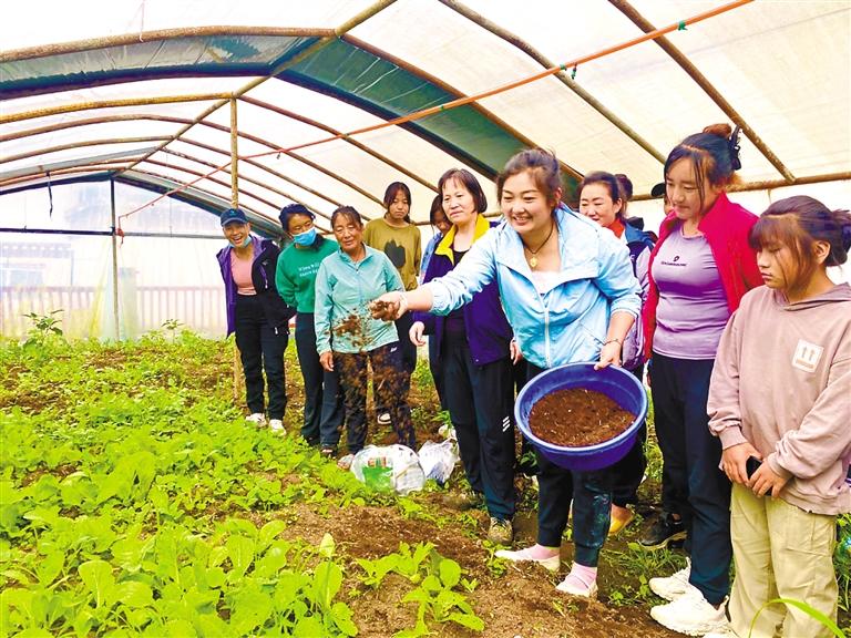 多龍崗村農民在大棚內實操土地施肥。記者 王敏 通訊員 郎玲 攝