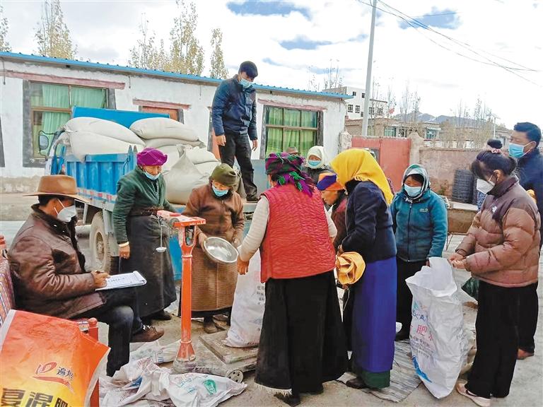 圖為拉薩凈土集團(tuán)在收購(gòu)林周縣群眾種植的青稞。記者 拉巴桑姆 攝