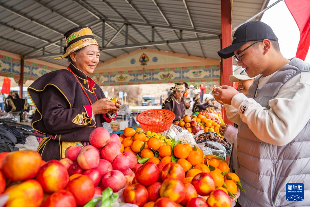 “2000年的時(shí)候,只有5、6戶(hù)在賣(mài)水果。后來(lái)我?guī)Т蠹胰ジ浇慕_(dá)縣、派鎮(zhèn)等參觀學(xué)習(xí),看別人怎么售賣(mài)、怎么搞衛(wèi)生?!?8歲的邊巴是羌渡崗村前村委會(huì)主任,他回憶,“以前攤位沒(méi)有通水,從村里接出的管道一到冬天就裂。隨著硬件改善和大家售賣(mài)經(jīng)驗(yàn)日漸豐富,村民們的變化越來(lái)越大?!?/p>