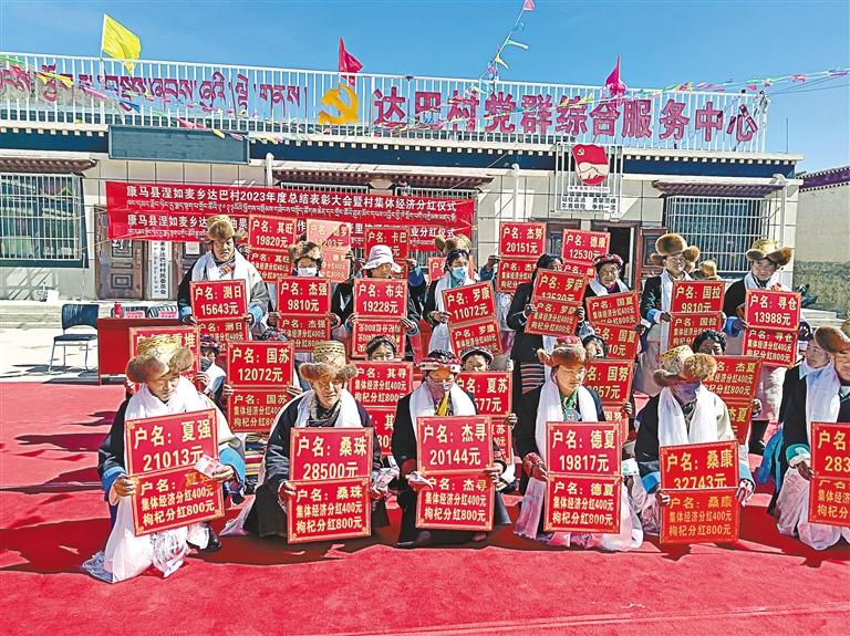 圖為康馬縣涅如麥鄉(xiāng)達巴村分紅儀式現(xiàn)場。