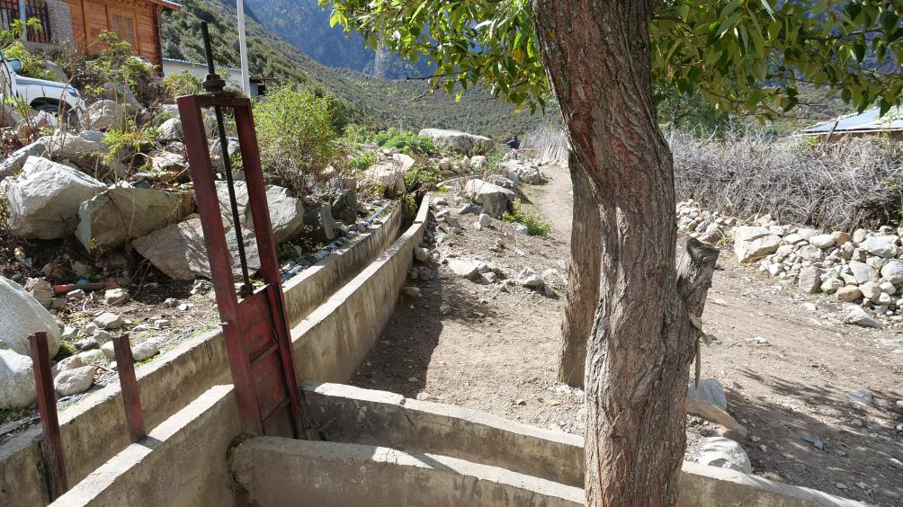 當地灌溉水源是雪山融水。尼屋鄉(xiāng)農牧綜合服務中心主任扎西次旺介紹,高標準農田建設前,鄉(xiāng)民一直沿用先民修的老水渠。