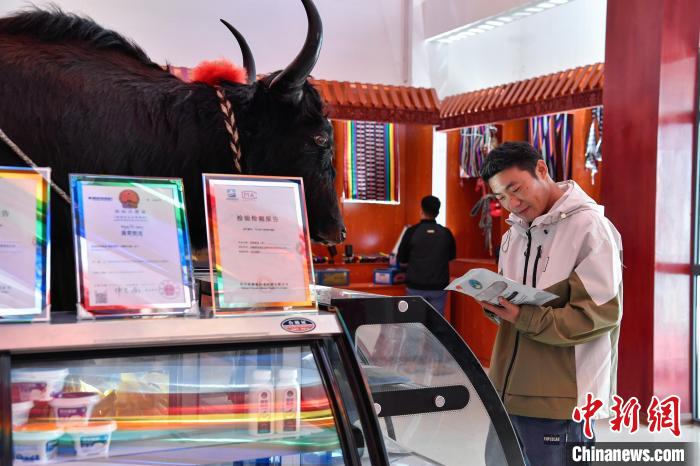 10月25日,西藏自治區(qū)那曲市聶榮縣,畜產(chǎn)品深加工產(chǎn)業(yè)正成為帶動牧民增收致富的新引擎。圖為游客參觀嘎確生態(tài)畜牧業(yè)發(fā)展有限責任公司產(chǎn)品展示區(qū)。中新社記者 貢嘎來松 攝