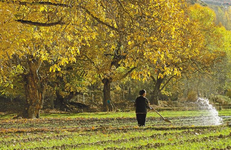 圖為加查縣安繞鎮(zhèn)熱果村次仁曲珍在冬灌。記者 洛桑 攝