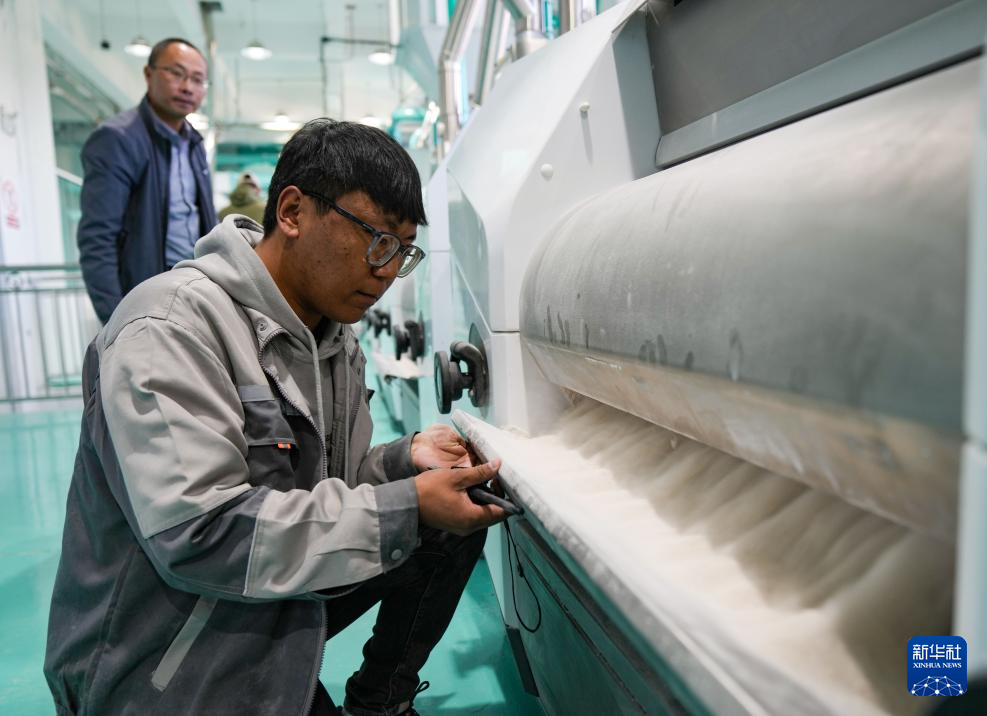 西藏稞研農業(yè)科技有限公司工作人員巡視青稞谷物專用生產線(10月16日攝)。新華社記者 晉美多吉 攝