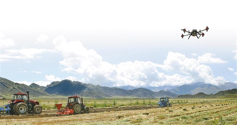 智能植保無人機在拉薩市林周縣助力農(nóng)業(yè)生產(chǎn)。記者 白瑪澤旺 攝