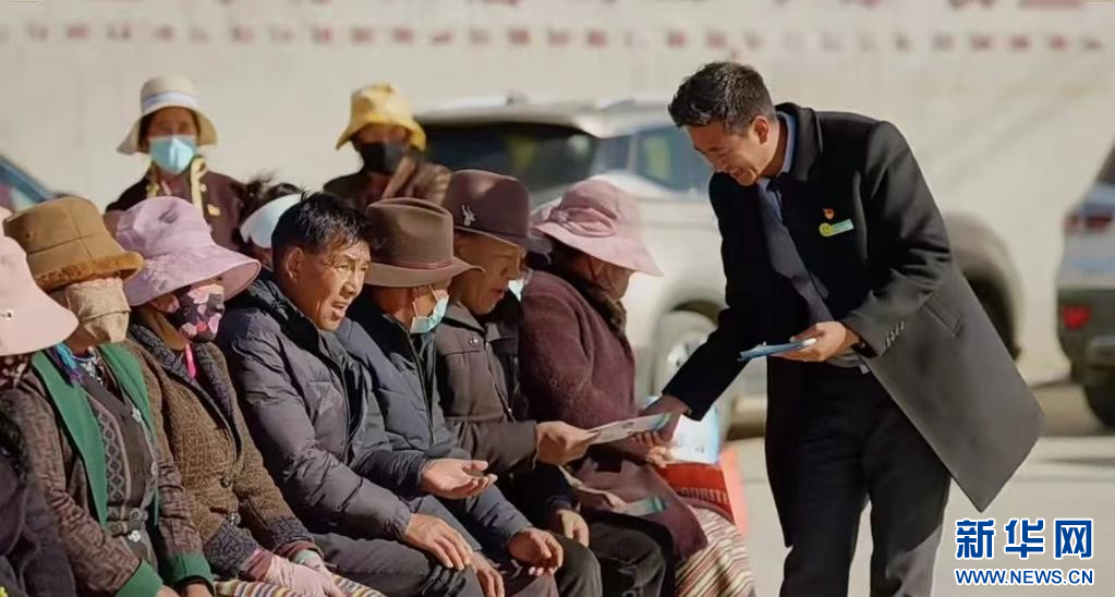 工作人員阿旺旦增為扎洞村群眾宣講金融知識(shí),并介紹“庭院經(jīng)濟(jì)貸”相關(guān)業(yè)務(wù)。(中國農(nóng)業(yè)銀行股份有限公司山南分行供圖)