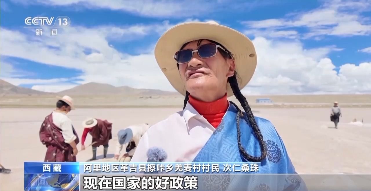 阿里地區(qū)革吉縣擦咔鄉(xiāng)黨委書記 貢覺(jué)次仁:我覺(jué)得有這樣一個(gè)鹽礦資源,我們?nèi)罕娨材軌蚩孔约旱碾p手能夠運(yùn)作起來(lái),所以我認(rèn)為鹽廠就是下一步,整個(gè)羌麥村的主要的經(jīng)濟(jì)實(shí)力,也是一個(gè)發(fā)展前景最好的經(jīng)濟(jì)實(shí)體。