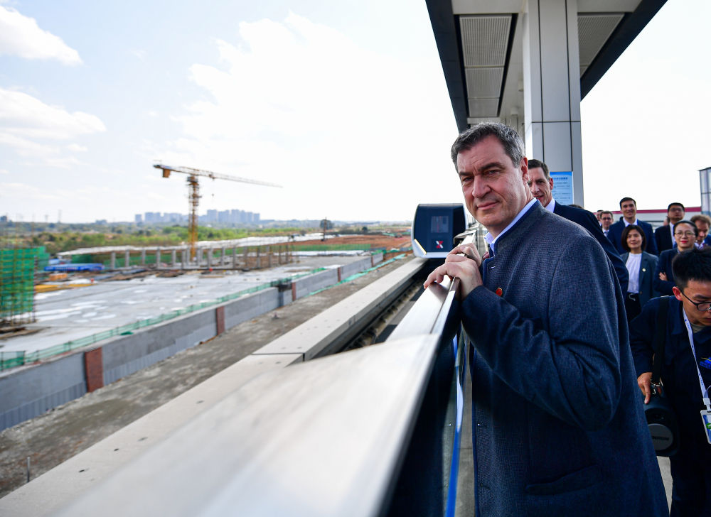 德國巴伐利亞州州長索德爾在四川參觀中德合作的磁懸浮成都試驗線。新華社記者張超群攝