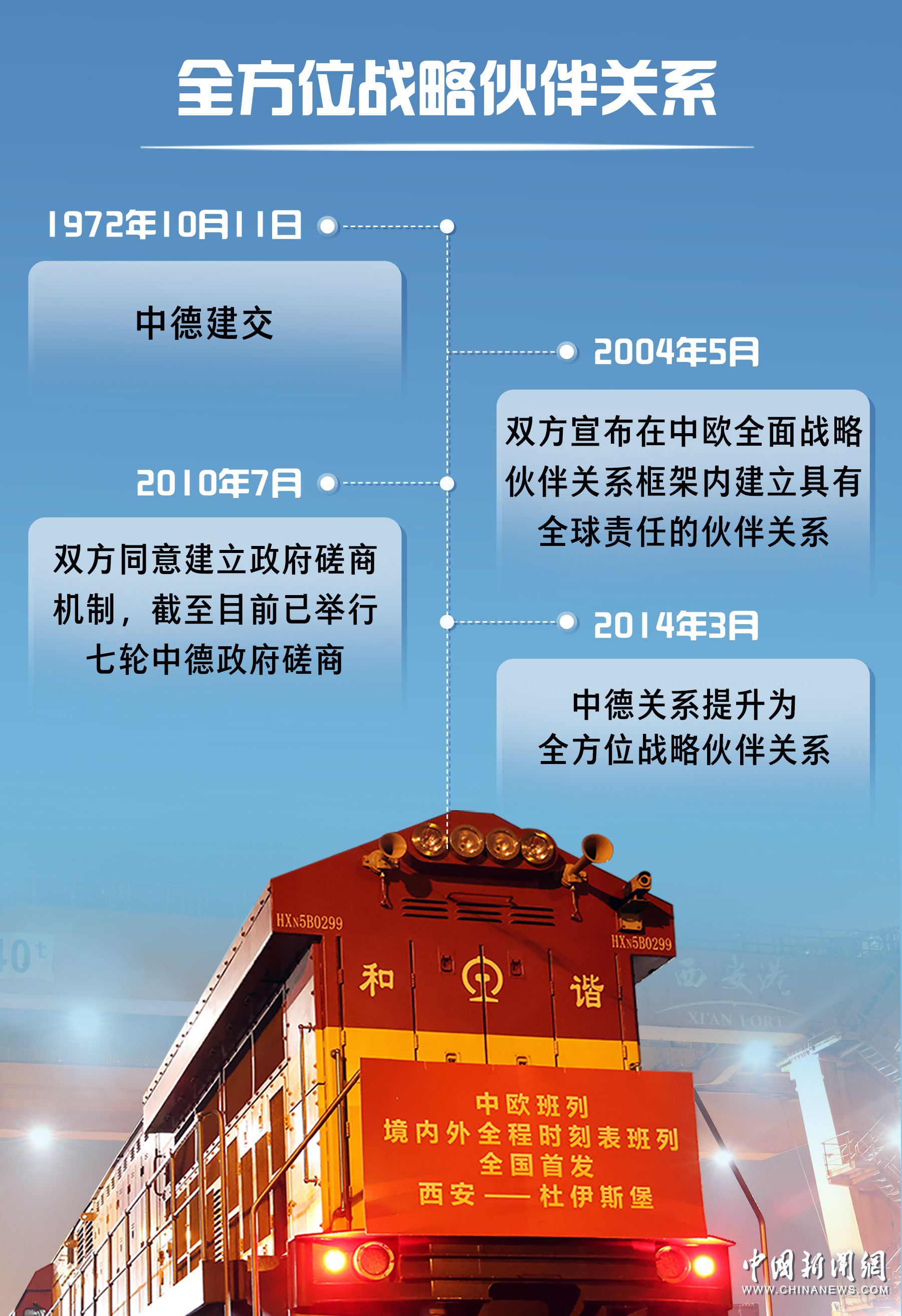中德1972年建交,2014年提升為全方位戰(zhàn)略伙伴關(guān)系。近年來,中德關(guān)系保持高水平發(fā)展,兩國(guó)高層交往密切。