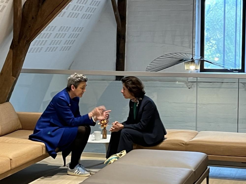 △歐盟競(jìng)爭事務(wù)專員維斯塔格與美國商務(wù)部長雷蒙多交流(圖片源自維斯塔格個(gè)人社交媒體賬號(hào))