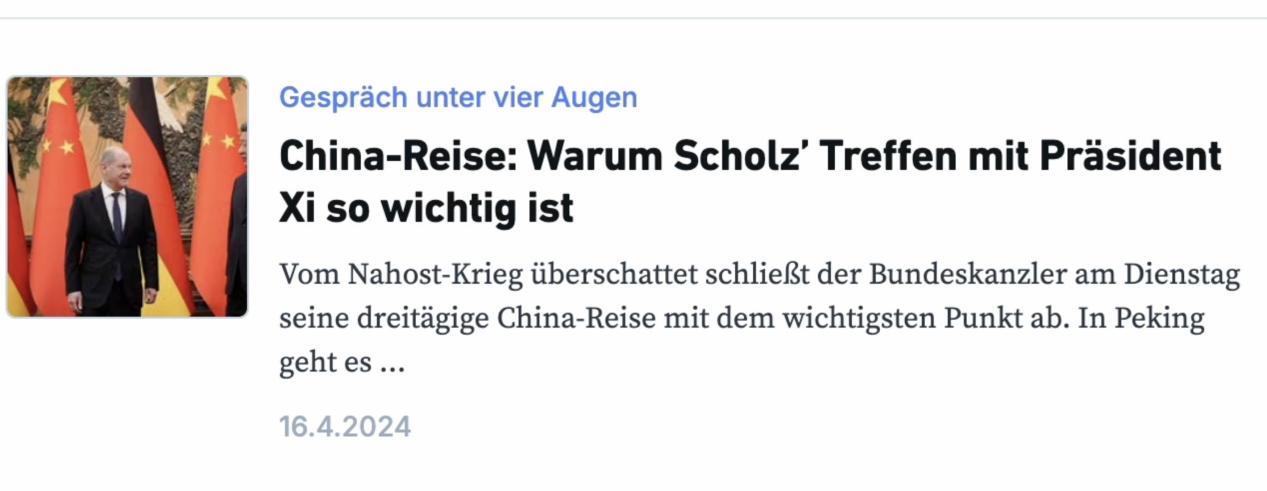 △德國網(wǎng)絡(luò)編輯部(RND)網(wǎng)站發(fā)布朔爾茨訪華的評(píng)論文章
