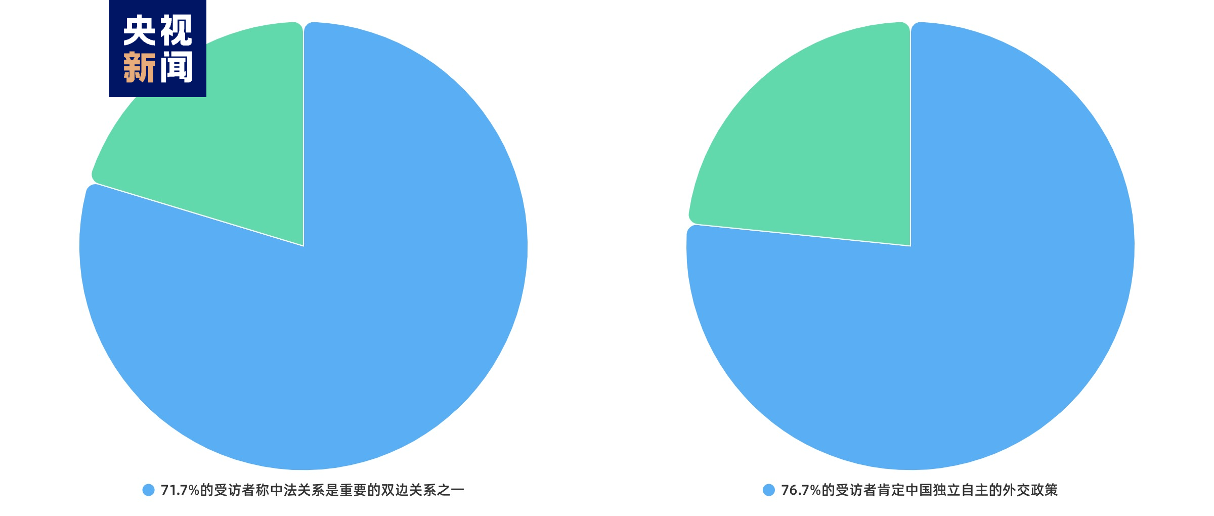 調(diào)查中,71.7%的受訪者認(rèn)為中法關(guān)系是全球重要的雙邊關(guān)系之一;61.6%的受訪者對(duì)中法關(guān)系未來的發(fā)展表示樂觀,期待雙方進(jìn)一步加強(qiáng)在經(jīng)貿(mào)、科技等領(lǐng)域的合作;65.1%的受訪者認(rèn)為,中法在國(guó)際事務(wù)上的密切合作有利于促進(jìn)世界和平與發(fā)展。