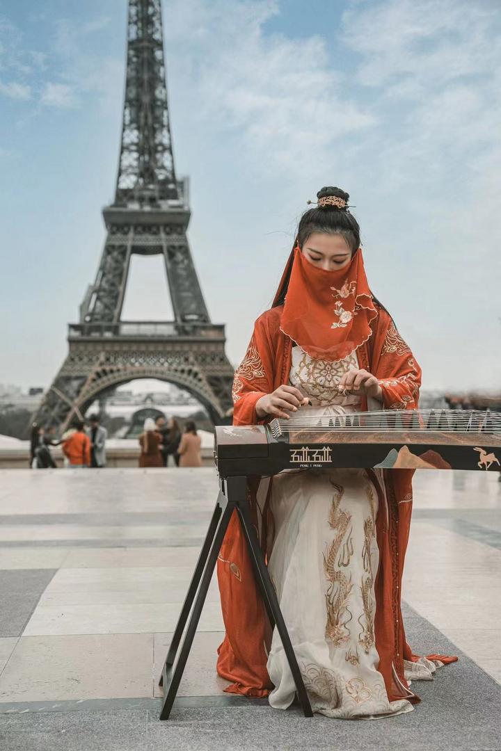 下一年的新學期,彭靜旋從國內(nèi)運來古箏,精心挑選曲目,開始在街頭彈奏。從那之后,歷史悠久的波爾多大劇院廣場前,出現(xiàn)了一個穿著漢服、戴著面紗的東方女孩,她撥弄琴弦,時而清脆、時而渾厚、時而悠揚的音樂自在流淌。
