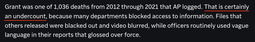 因?yàn)樵S多部門封鎖了記者獲取信息的渠道,而通過其他渠道公布的相關(guān)文件被蓄意涂改,視頻也被做了模糊化處理,警察們則在報告中經(jīng)常使用模糊的語言來掩蓋武力使用事實(shí)。