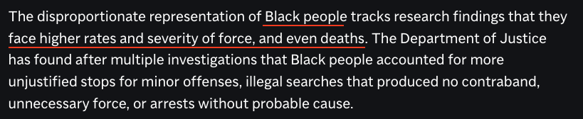 調(diào)查還發(fā)現(xiàn),在警方經(jīng)手的輕微犯罪處理、不涉及違禁品的無端搜查、不必要的武力使用或無正當(dāng)理由的逮捕中,作為執(zhí)法對象的非裔所占比例也更高。