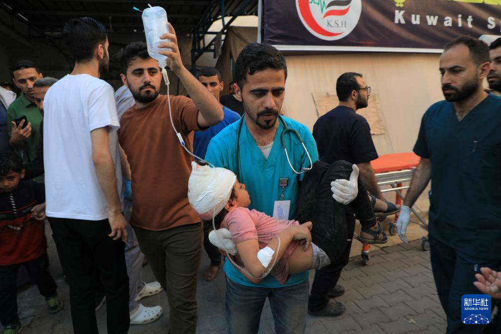 5月8日,醫(yī)護(hù)人員在加沙地帶南部城市拉法一處醫(yī)院轉(zhuǎn)移受傷的兒童。新華社發(fā)(里澤克·阿卜杜勒賈瓦德攝)