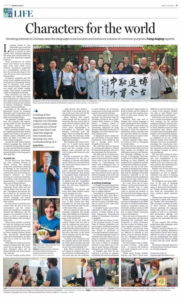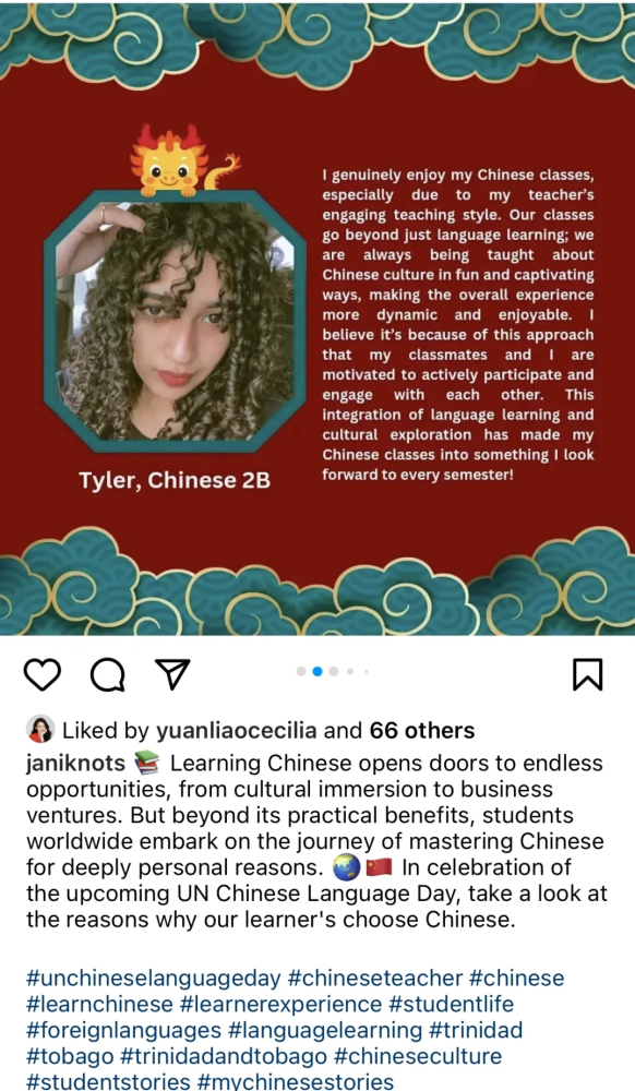 第十五個聯(lián)合國中文日和第五個“國際中文日”舉辦期間,中外語言交流合作中心與中國日報網聯(lián)合發(fā)起 “國際中文日”系列線上活動,鼓勵大家講述、分享與中文相遇的精彩故事,半個月內活動參與者覆蓋全球五大洲近70個國家和地區(qū),包括英國、意大利、澳大利亞、美國、巴西、日本、韓國、泰國、老撾、迪拜、喀麥隆等,作品超2000件,閱讀量超1000萬,在中國和其他國家主流社交媒體平臺掀起“中文日”熱潮,吸引了海內外網友的廣泛關注。