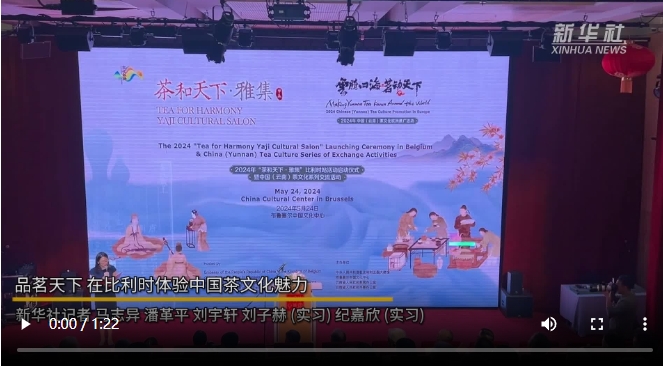 “茶和天下·雅集”云南茶文化交流活動(dòng)24日在比利時(shí)布魯塞爾中國(guó)文化中心舉辦?;顒?dòng)以茶為媒,通過(guò)茶主題文藝展演、茶文化詩(shī)詞分享會(huì)、中國(guó)國(guó)家級(jí)非遺技藝展示和體驗(yàn)等多種形式,吸引比利時(shí)民眾感受中國(guó)茶文化的魅力。