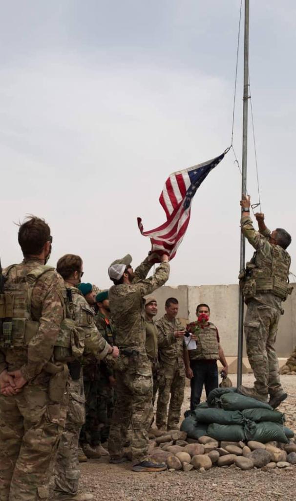 2021年5月2日,美軍士兵在阿富汗赫爾曼德省一處軍事基地降下美國(guó)國(guó)旗。當(dāng)日,美軍向阿富汗國(guó)民軍移交這處軍事基地。美國(guó)和北約軍隊(duì)5月1日起正式開(kāi)始撤離阿富汗,計(jì)劃在9月11日前撤完。新華社發(fā)(阿富汗國(guó)防部供圖)
